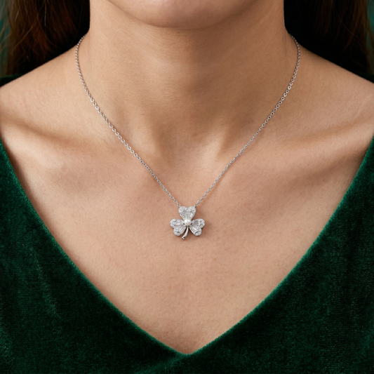 Regular price Rs. 3,049.00Regular priceUnit price / perRs. 3,899.00Sale price Rs. 3,049.00A symbol of luck, elegance, and timeless charm — the Premium Clover Stone Pendant Chain is crafted to elevate your everyday style. Made from pure 92.5 Sterling Silver, this beautifully detailed clover pendant features a radiant center stone that adds a soft, luxurious sparkle.