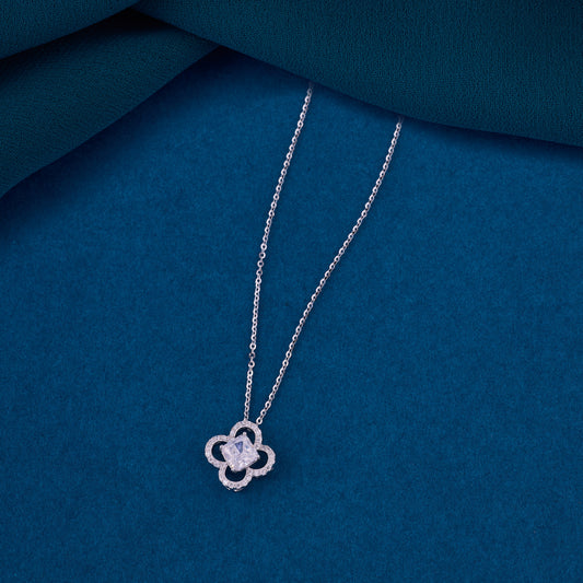 Premium Floral Crystal Halo Pendant Chain in 92.5 Sterling Silver