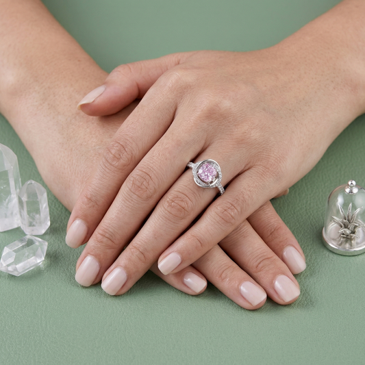 The gentle pink tone adds a feminine charm, making it perfect for both everyday wear and special occasions.