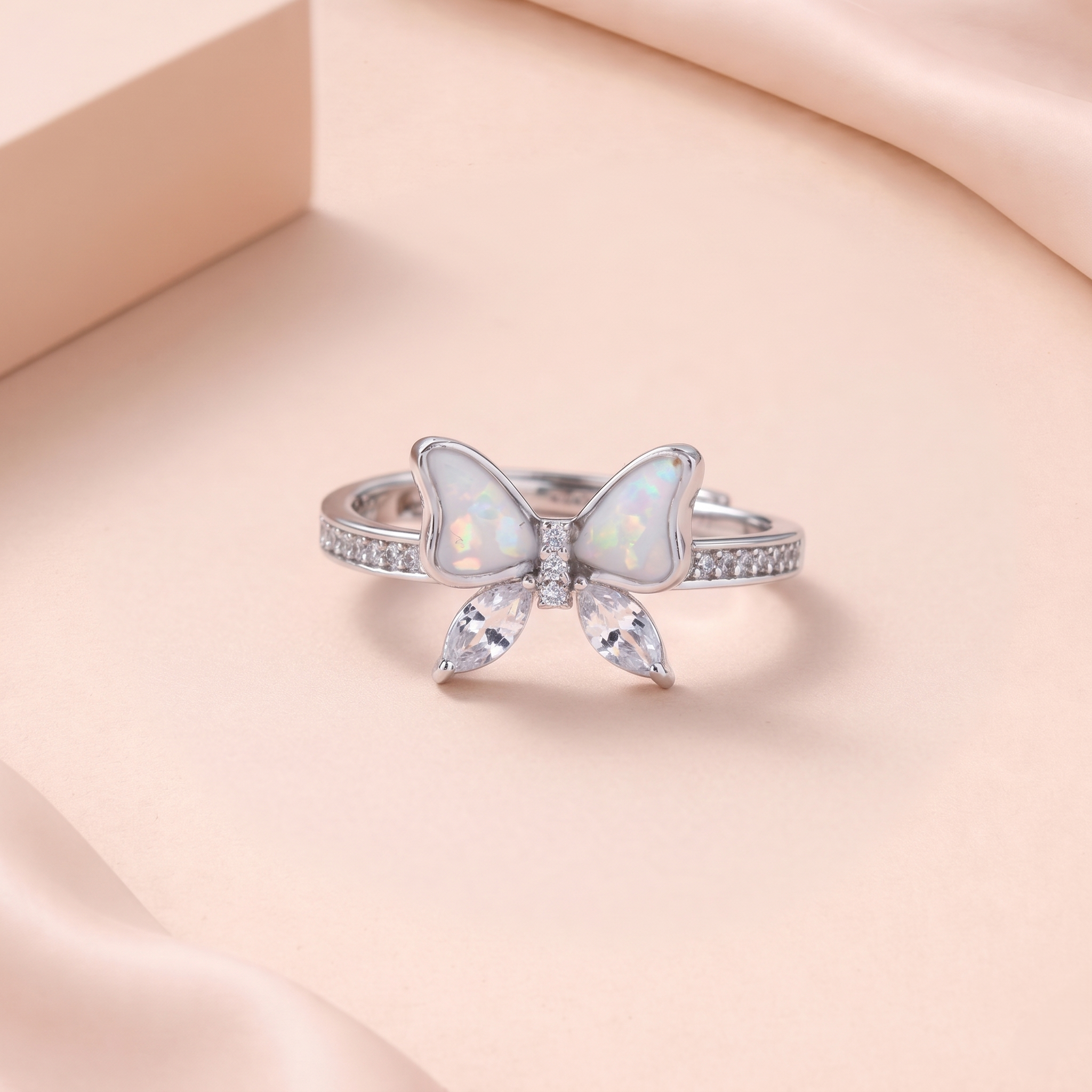 The sparkling pavé band adds extra brilliance, giving the ring a luxurious yet refined finish. Designed with an adjustable size, it ensures a comfortable and secure fit — making it ideal for gifting, special occasions, or adding a romantic touch to your everyday style.