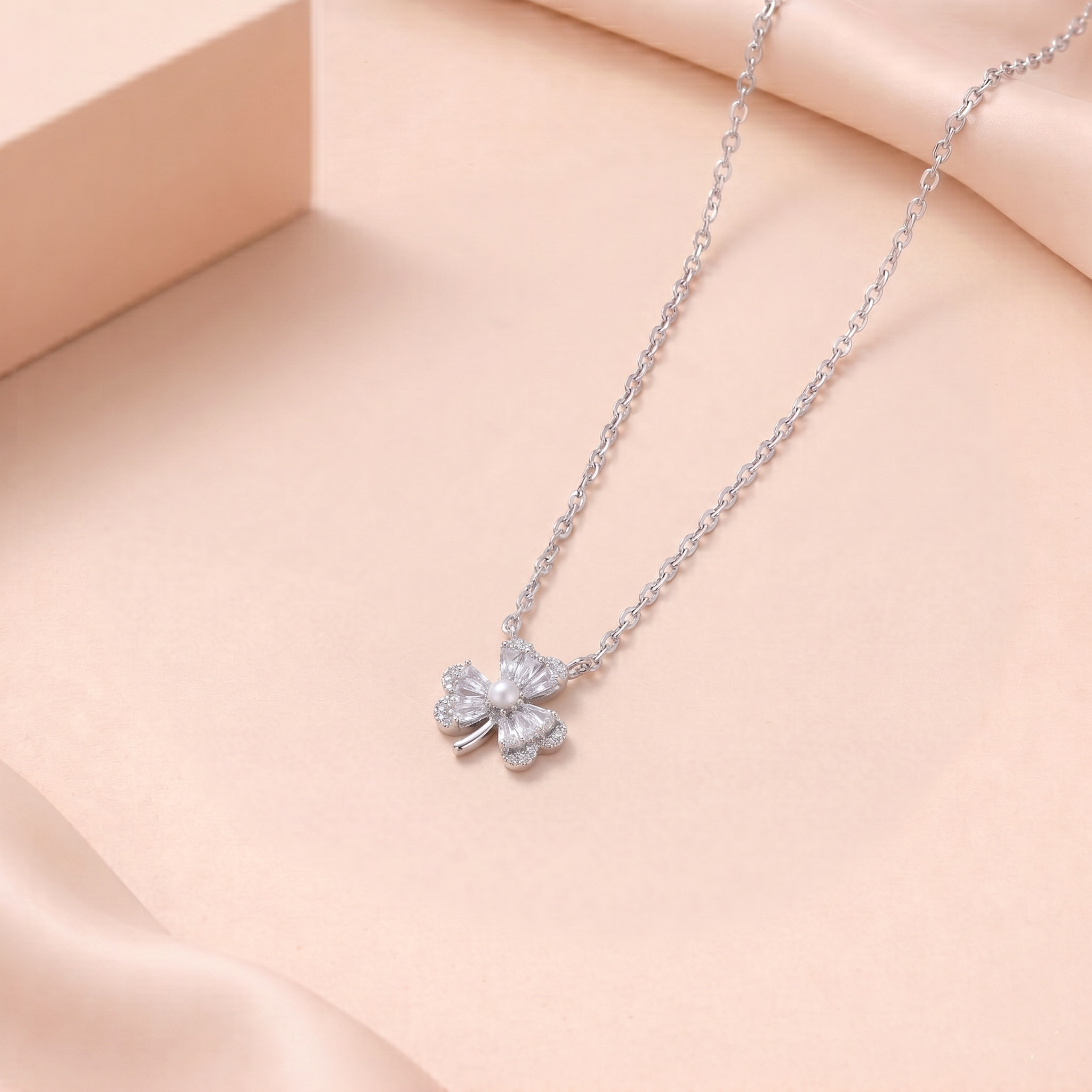 Suspended from a fine silver chain, this necklace is perfect for adding a soft, feminine touch to everyday outfits or special occasions. Wear it solo for a delicate statement or pair it with subtle studs for a coordinated, elegant style. A lovely piece for those who adore nature-inspired sparkle with modern refinement.