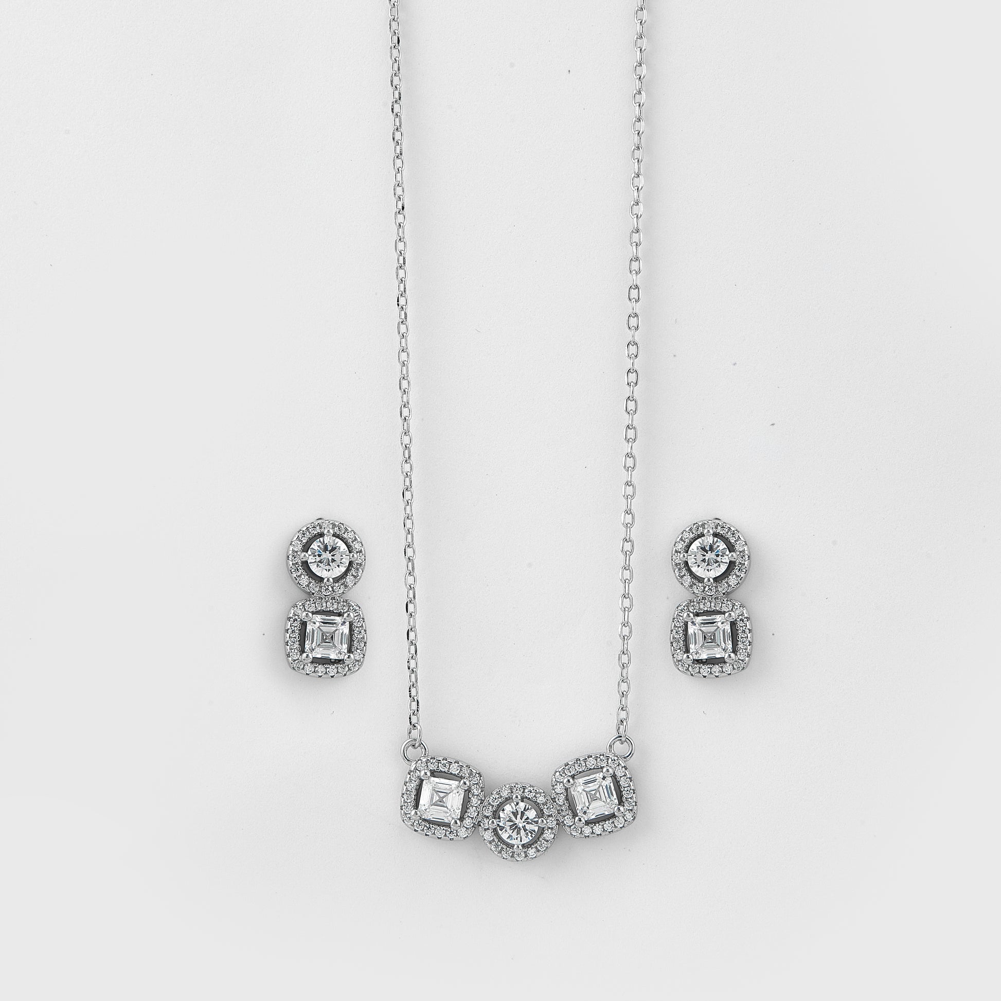Add a touch of refined brilliance to your collection with this Elegant Triple Halo Pendant & Earrings Set, crafted in pure 92.5 sterling silver.