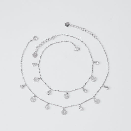 Layered CZ Bezel & Disc Charm Dangle Anklet in 92.5 Sterling Silver