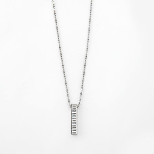 Minimalist Vertical Baguette CZ Bar Pendant Chain in 92.5 Sterling Silver