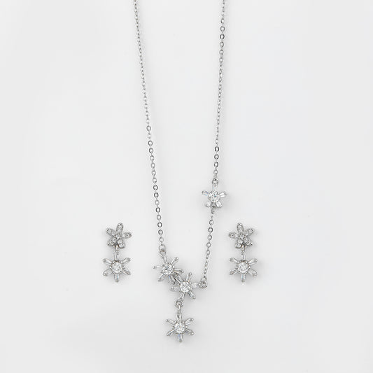 Regular price Rs. 3,749.00Regular priceUnit price / perRs. 4,999.00Sale price Rs. 3,749.00Shine with graceful charm in this Elegant Snowflake CZ Pendant Necklace with Matching Earrings, exquisitely crafted in pure 92.5 sterling silver for a radiant and lasting finish. Inspired by the delicate beauty of snowflakes, each piece is adorned with sparkling cubic zirconia stones that capture and reflect light from every angle.